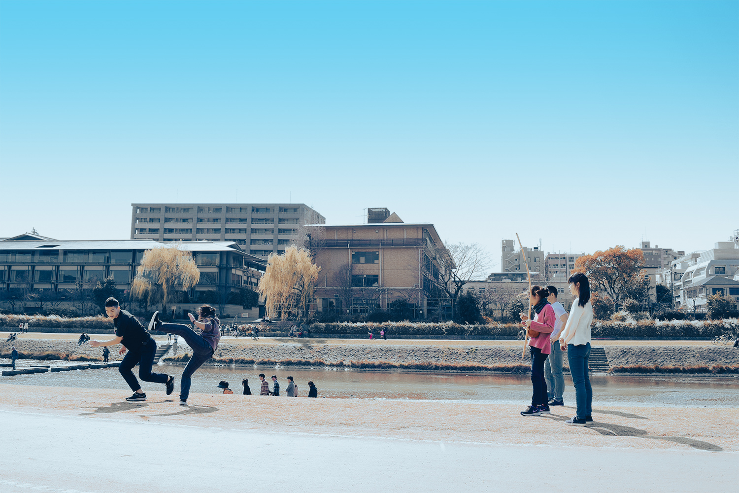 当団体では10代~50代の方まで幅広い年齢層の方が参加しており、男女比もほぼ同じです。また京都という土地柄、外国のカポエリスタも多く訪れます。年齢を問わず、性別を問わず、人種を問わず、様々な人と交流ができるのもカポエイラの魅力の一つです。